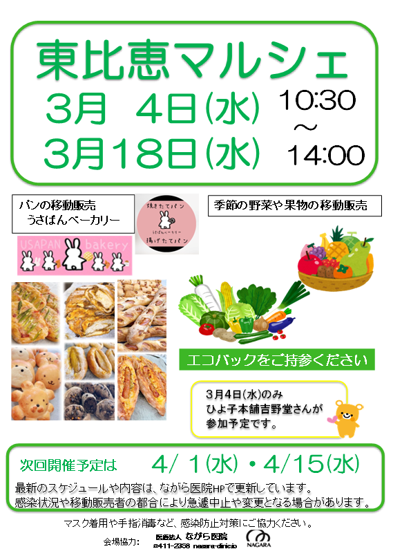 【東比恵マルシェ 3月 開催のお知らせ】